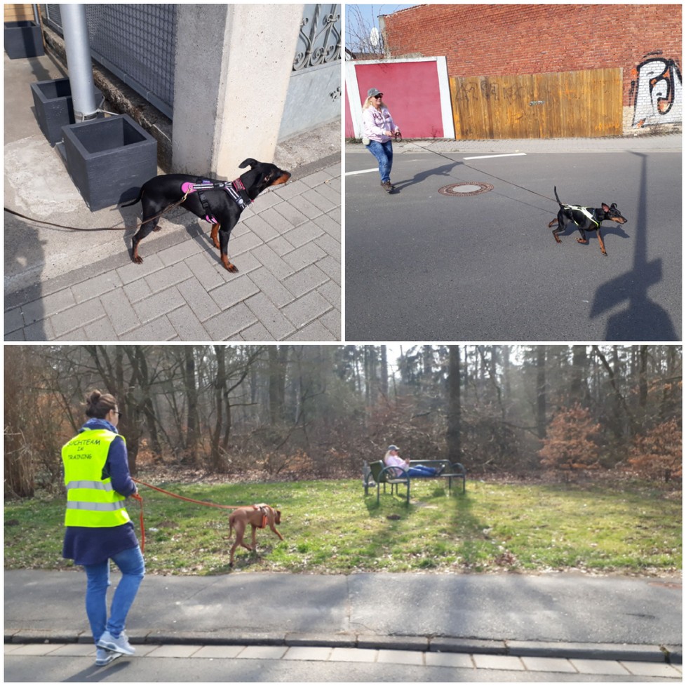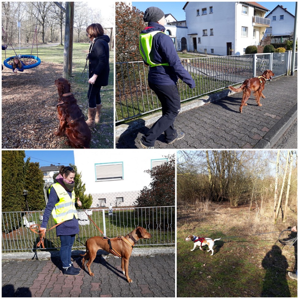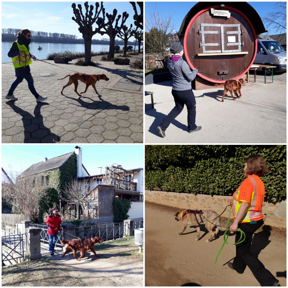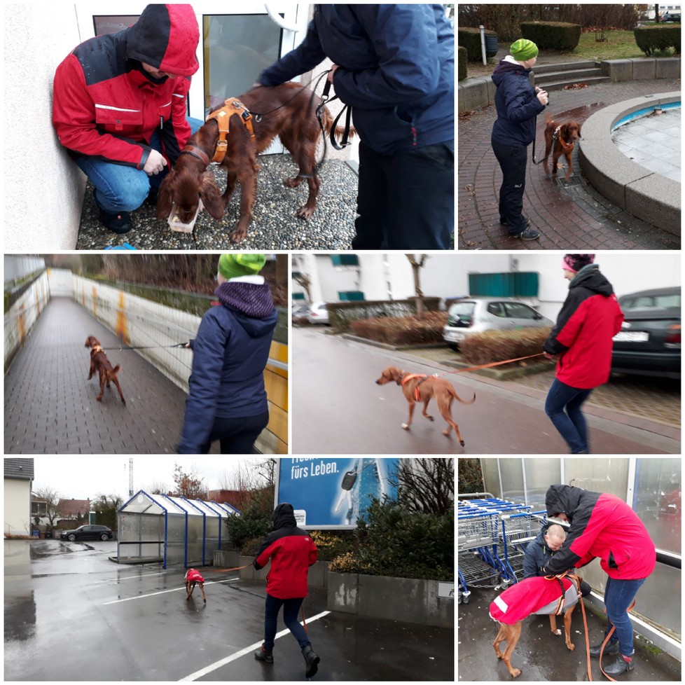 Am Montag und Dienstag waren wir in Eppstein. Hier wurde ein Trail gelegt und die Hunde haben nacheinander gearbeitet. Dieser Trail war sehr anspruchsvoll, denn es standen Aufzug fahren, Straßenüberquerungen und Kreuzungsentscheidungen an.
